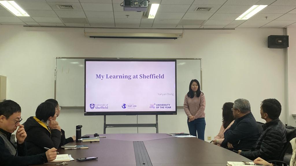 1月16日,外语教研部成功举办教师出国访学国内培训经验交流会。董妍妍老师以“我的谢菲尔德大学访学之旅”为主题,向全体外语教师分享了其在英国谢菲尔德大学的访学经历与丰硕收获,交流会由外语教研部主任杨春会主持,全体教师参会。